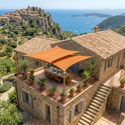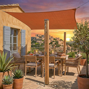 Voile carrée orange imperméable. Protection UV 95%, installée en 30 min.